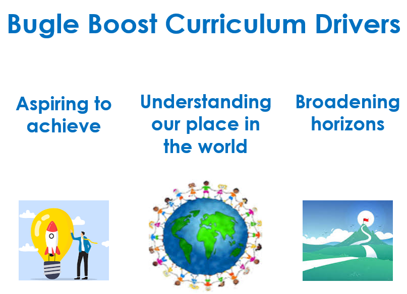 Our Bugle Boost curriculum supports our pupils to develop their personal skills and values through a range of exciting learning opportunities. This will include whole school events, every day activities and bespoke lessons for each key stage.